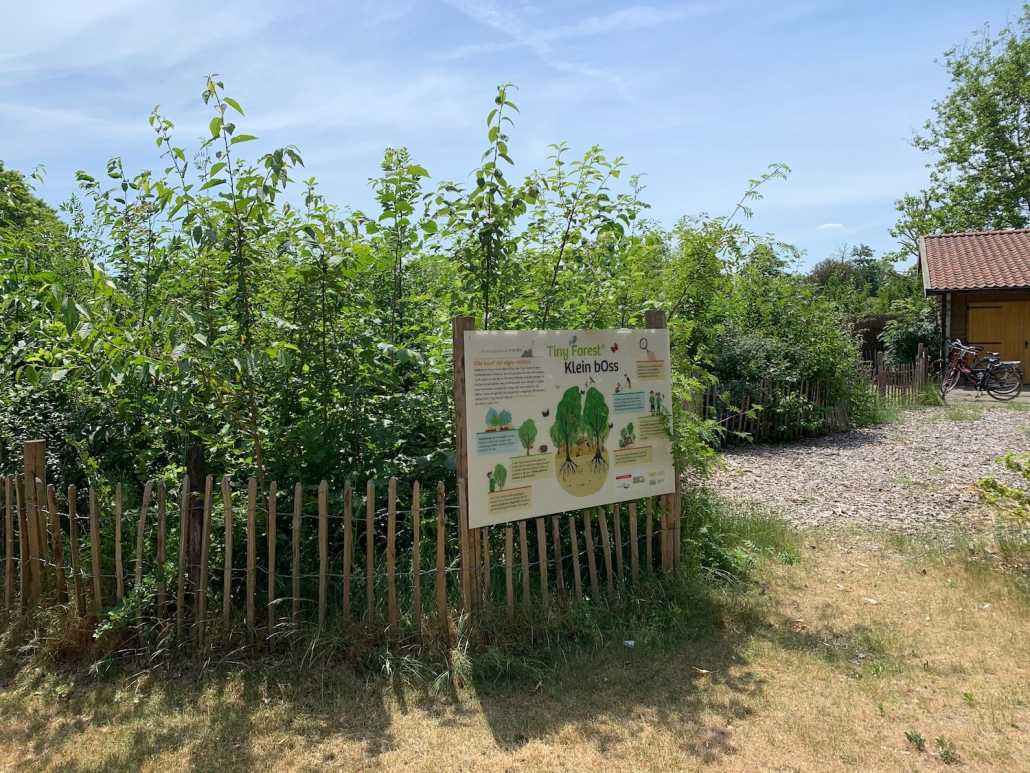 Tinyforest Klein bOss is gegroeid!! En hoe! Na ruim een jaar (maart 2019) steken de jonge boomtoppen nu al boven de 2 meter uit. In maart 2019 aangeplant en nu dus al meters hoog. Zie hoe het was Toen … en ga nu maar eens kijken!!